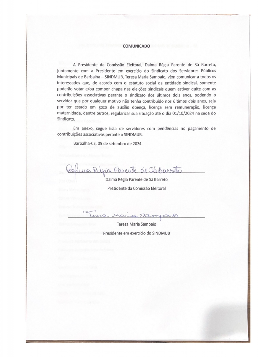 Comunicado importante sobre as Eleições Sindicais - Simdmub