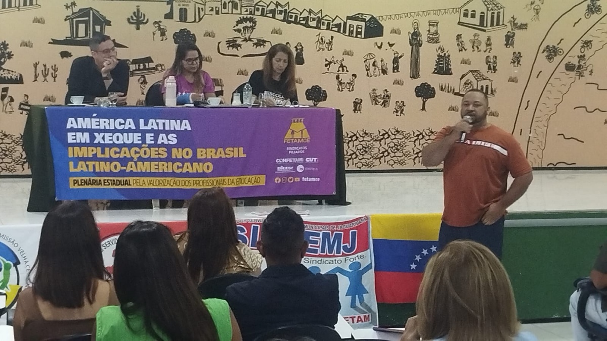 Realizada na cidade de Fortaleza, a plenária reuniu sindicatos de todo o Ceará para deliberar sobre campanha salarial 2026. O encontro iniciou-se com a palavra da professora Nery, explanando a problemática da autonomia, independência e hegemonia da América Latina em virtude da prisão de Nicolás Maduro e a prática imperialista dos Estados Unidos da América, o professor David Moreno, fez uma análise sobre a atual condição do entendimento político, enfatizando o pensamento da extrema direita autoritária que naturalizou o processo de escravidão por vários séculos , o que segundo ele, deu origem o ao racismo estrutural no país.