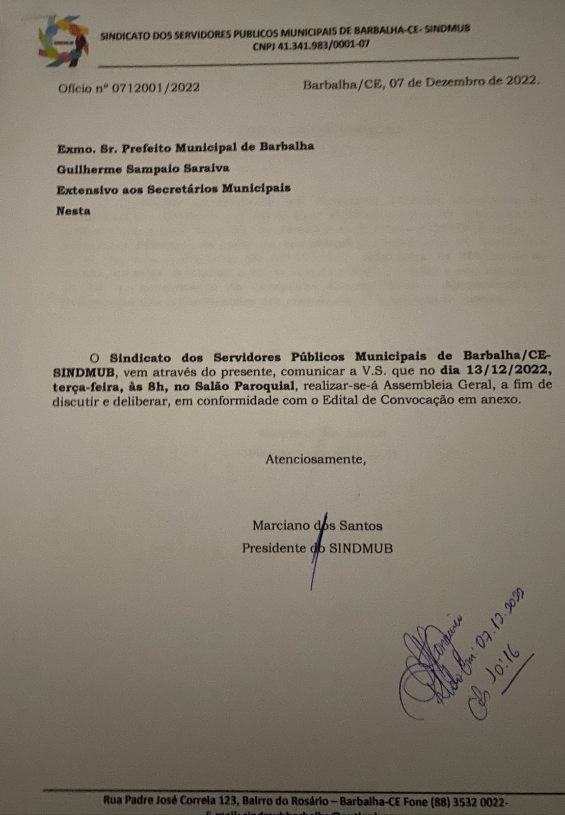 Assembleia Geral -Campanha Salarial - Reivindicações dos Servidores. 08/12/2022 0 Comentário(s) #Compartilhe