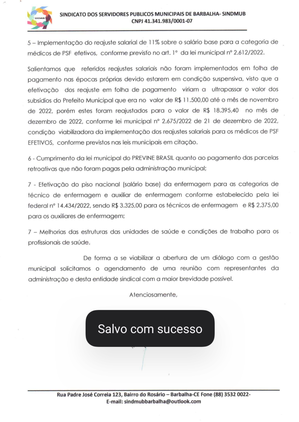 Sindmub reitera pautas de reivindicações dos profissionais da saúde 12/04/2023 0 Comentário(s) #Compartilhe
