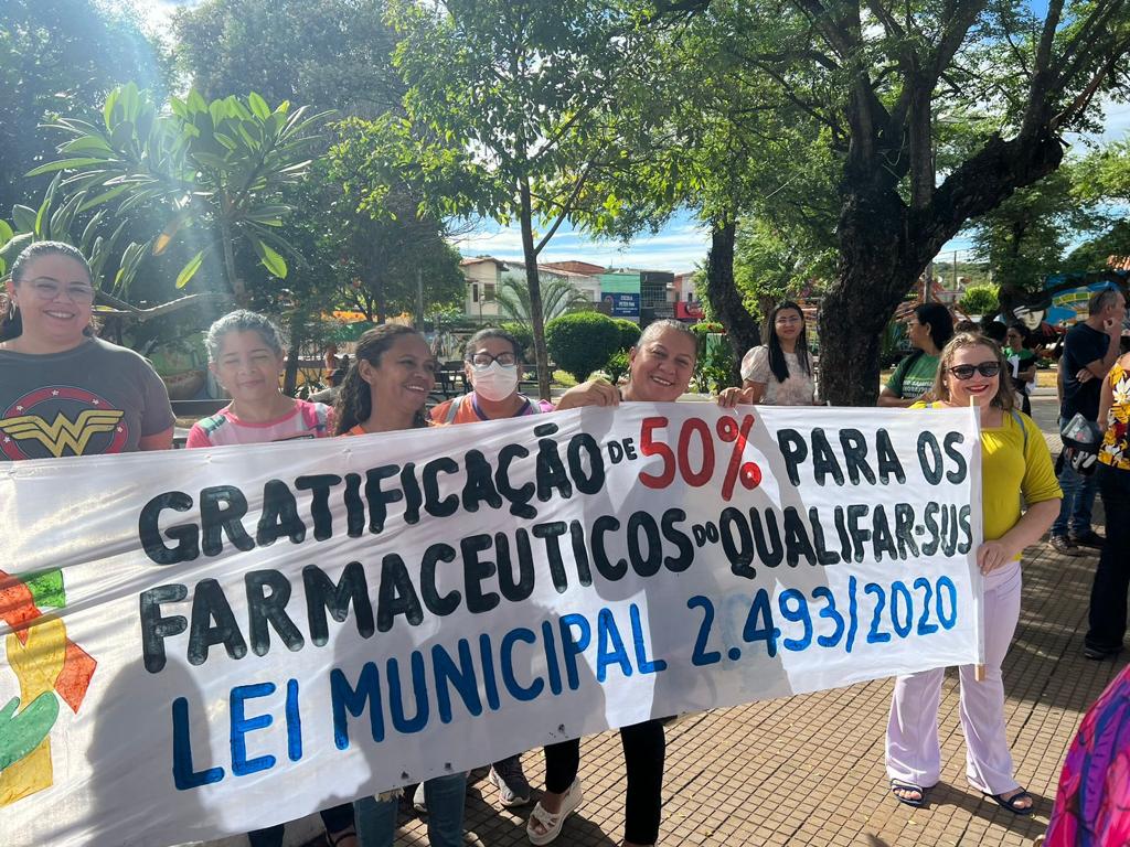 O ato percorreu as ruas do centro da Barbalha e se estendeu até a secretaria de saúde.