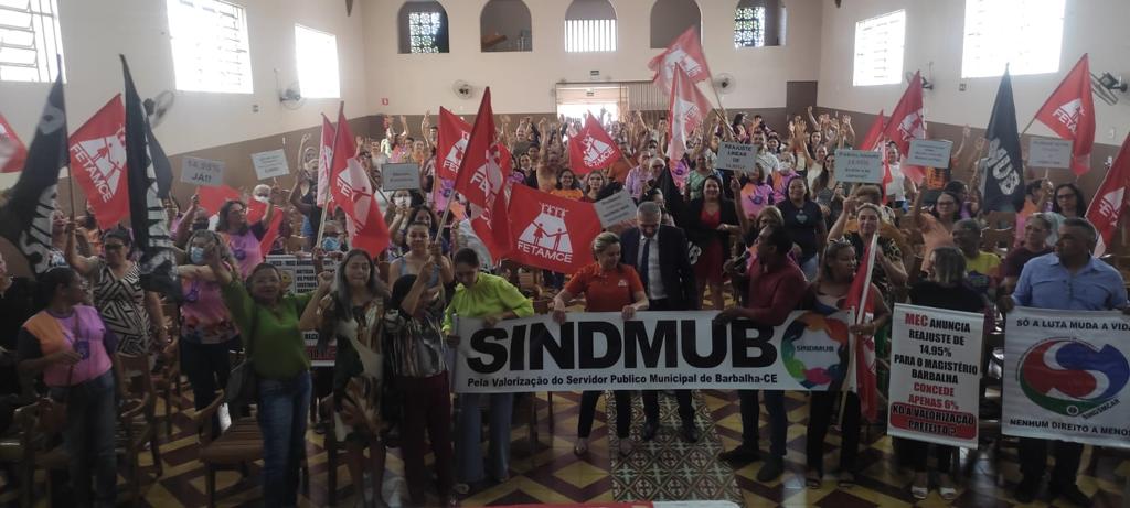 SINDMUB na manhã de hoje, 20/06, no salão paroquial se reuniu-se em assembleia geral a categoria de Professores e convidados pelo sindicato, em cumprimento de mais um dia de paralisação na rede pública de ensino, conforme deliberado, visando a implementação do reajuste linear complementar de 8,95%, como forma de valorização, visto que na lei do piso em seu artigo 6º estabelece que estados e municípios instituam o Plano de cargos e carreiras, direito este já preconizado no PCCR desses profissionais.