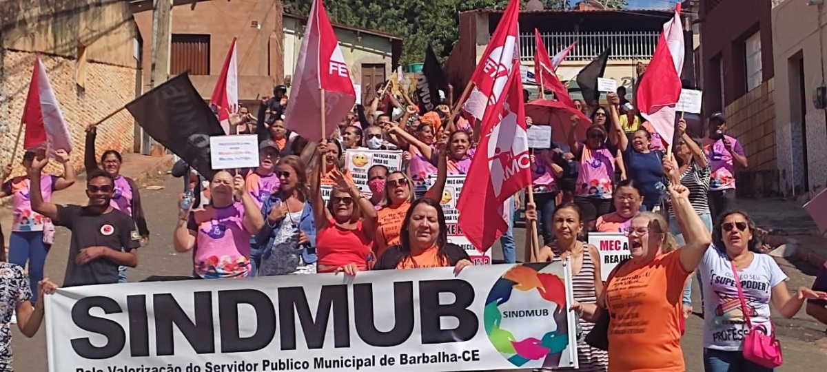 SINDMUB na manhã de hoje faz caminhada pacífica nos bairros Rosário e Rosarinho. Os professores seguem firmes na luta por valorização e respeito. Só na administração de Dr Guilherme Saraiva a categoria já acumula quase 40% de perdas salariais. Em 2021 os salários dos professores *não foram reajustados* e a inflação e o salário mínimo foram reajustados em mais de 5% Em 2022 o MEC anunciou 33,24% de reajuste para os professores e o município só reajustou em 11% perdendo assim a categoria mais 22,24% já somando em dois anos 27,24% de perdas. Agora em 2023 o MEC anunciou 14,95% e mais uma vez o município não aplicou o percentual na carreira reajustando o salário em apenas 6%. E desta forma aumenta o percentual de *desvalorização* para quase 36%. A carreira do professor no quadro funcional está sendo desmontada. O salário achatado e a desvalorização só cresce a cada ano. É um verdadeiro desmonte dos direitos das classes trabalhadoras. O pessoal da saúde ainda aguarda, já em processo de manifestações, a correção salarial de acordo com a inflação. Estes três anos de gestão os profissionais sobrevivem sem salários reajustados de acordo com a inflação. Já são 2 anos sem reajustes de salário. O servidor perde o poder de compra e isso impacta também na economia da cidade. O SINDICATO ainda nutre a esperança que o bom senso se sobressaia a inconsequência e as partes entrem em acordo cessar os movimentos paredistas da educação e saúde. O SINDMUB se coloca à disposição do município para por em prática a Mesa Permanente de Negociação. Que prevaleça o princípio da razoabilidade Diálogo sim. Imposição NÃO.