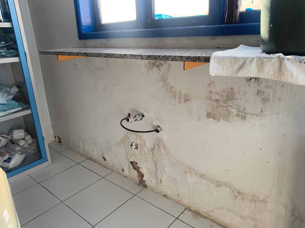 Na visita in loco pode constatar muitos problemas na estrutura fisica da unidade, tais como, falta de pintura do prédio, presença de cupins, muito mofo e infiltrações, dentre outros, além das condições précarias dos 05 consultórios para atendimentos aos usuarios, etc.