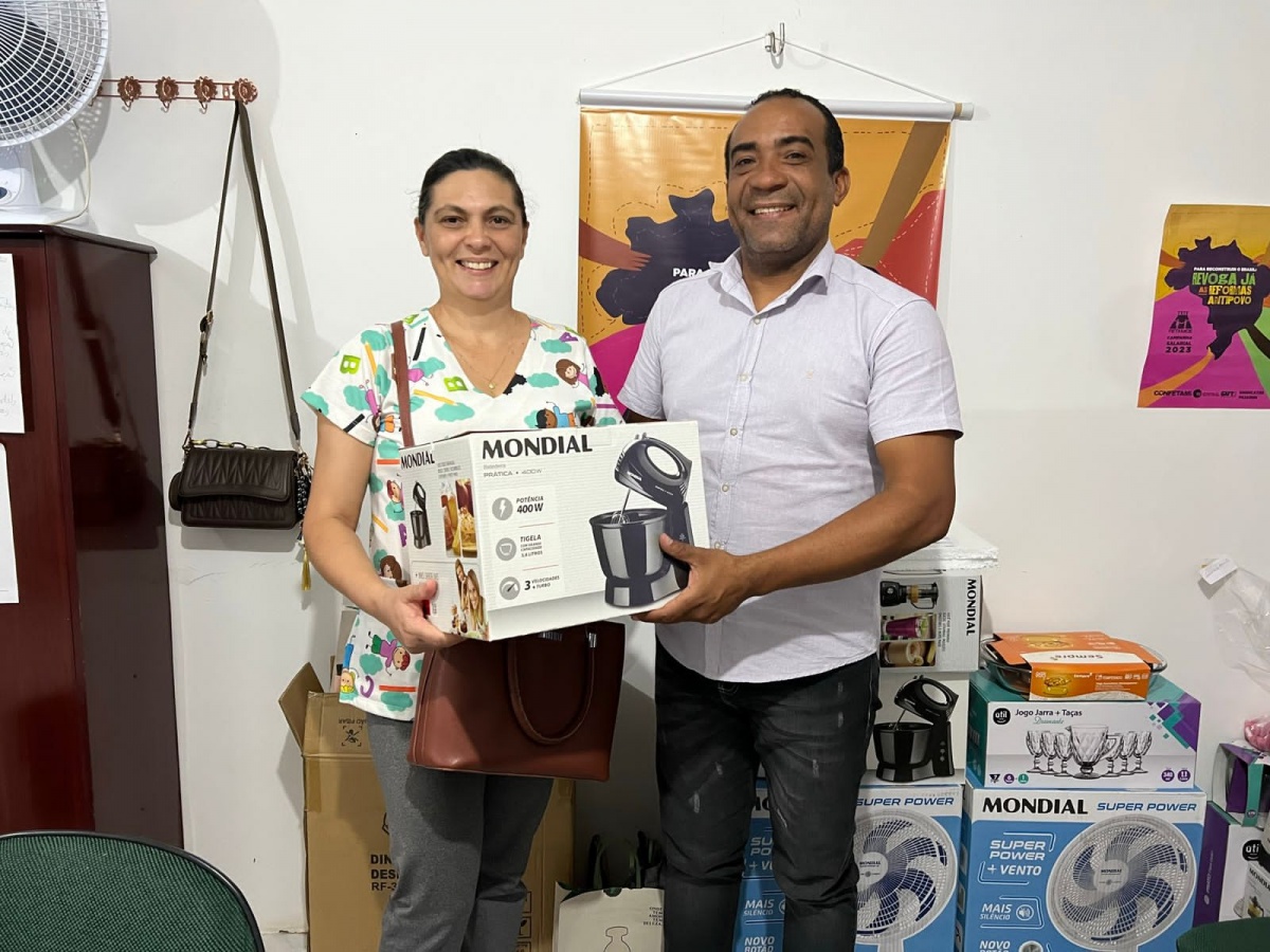 SINDMUB realizou sorteio de brindes em Homenagem ao Dia dos professores. Dentre os brindes, valores em pix, eletrodomésticos, perfumaria, utilidades do lar, roupa de banho, dentre outros. Na próxima semana haverá novo sorteio desta vez para os servidores públicos municipais em homenagem ao Dia do Servidor Público. Dentre os/as ganhadores/ganhadoras estão :