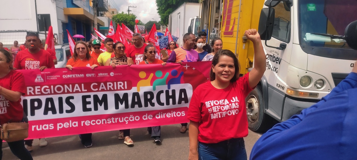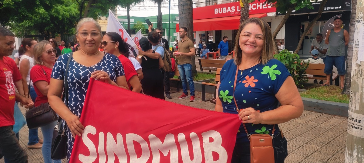 SINDMUB participa na manhã de hoje na Praça Siqueira Campos na cidade de Crato - Ceará da Marcha Regional em Defesa do Serviço Público de Qualidade. O evento aconteceu com a participação da FETAMCE e sindicato da regional Cariri.