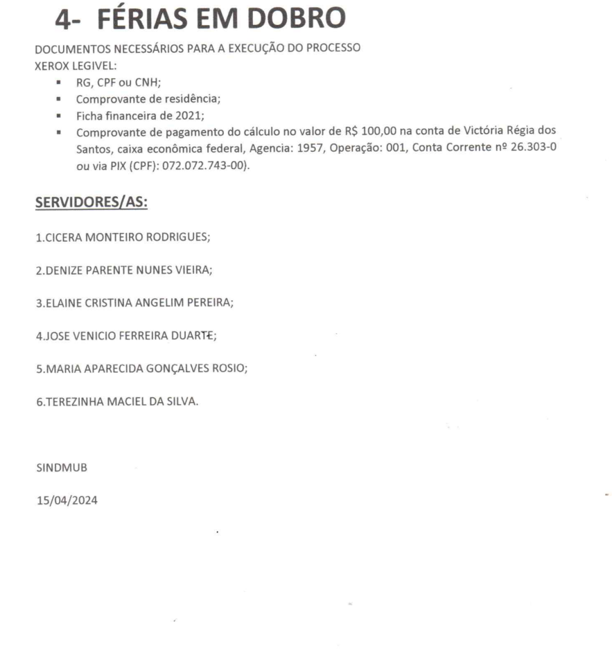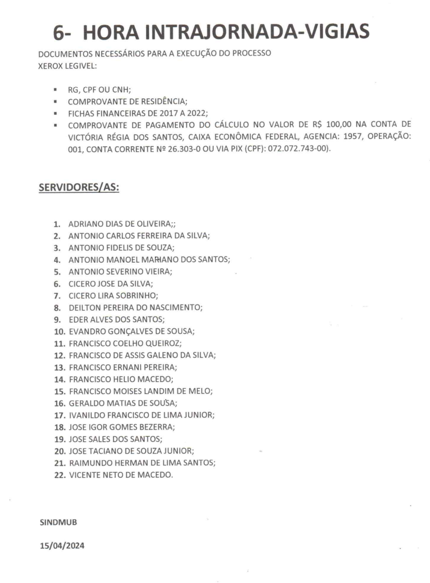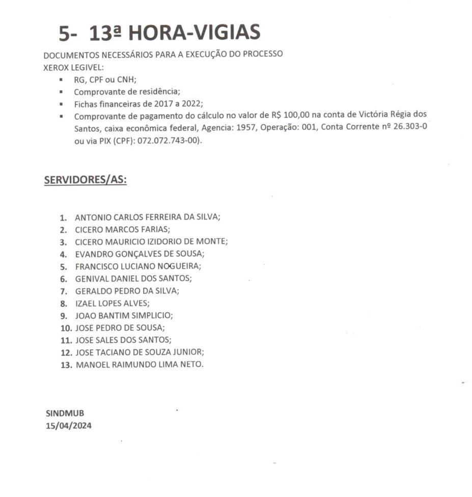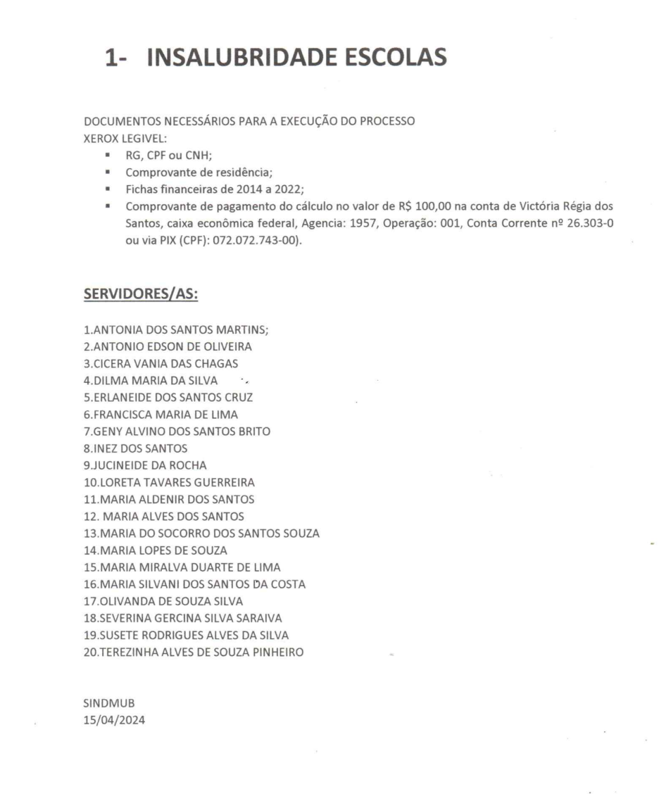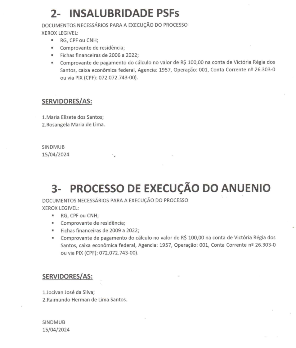 Solicitamos que os servidores abaixo relacionados, compareçam ao sindicato com URGÊNCIA, munidos de cópias dos documentos, conforme cada processo descrito a seguir.