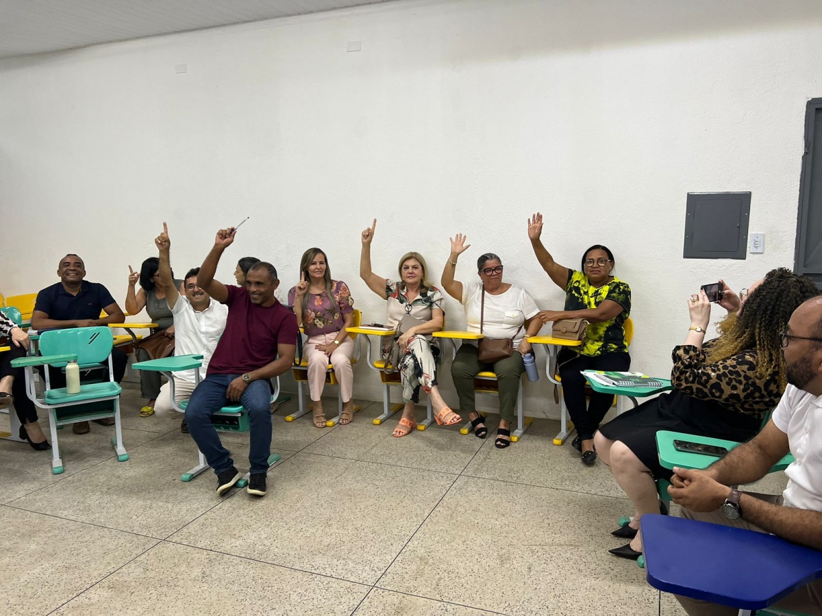 SINDMUB participa de reunião com os Conselhos do Fundeb e de Educação, Secretário de Educação, Procuradoria Geral do Município para tratar da utilização dos recursos do FUNDEB. O Secretário de Educação João Paulo apresentou plano de ação com foco na valorização do servidor através de bonificação, formação e melhores condições de trabalho. Em seguida a Procuradora Dra Ezera Cruz apresentou a os meios legais para utilização dos recursos e colocou para apreciação dos Conselhos de Educação e do FUNDEB que aprovaram por unanimidade o plano de ação da SME. A bonificação para os servidores é uma pauta antiga do sindicato SINDMUB e somente agora houve a sensibilidade do gestor municipal , na pessoa de Dr Guilherme Saraiva em atender a reivindicação dos profissionais da educação.