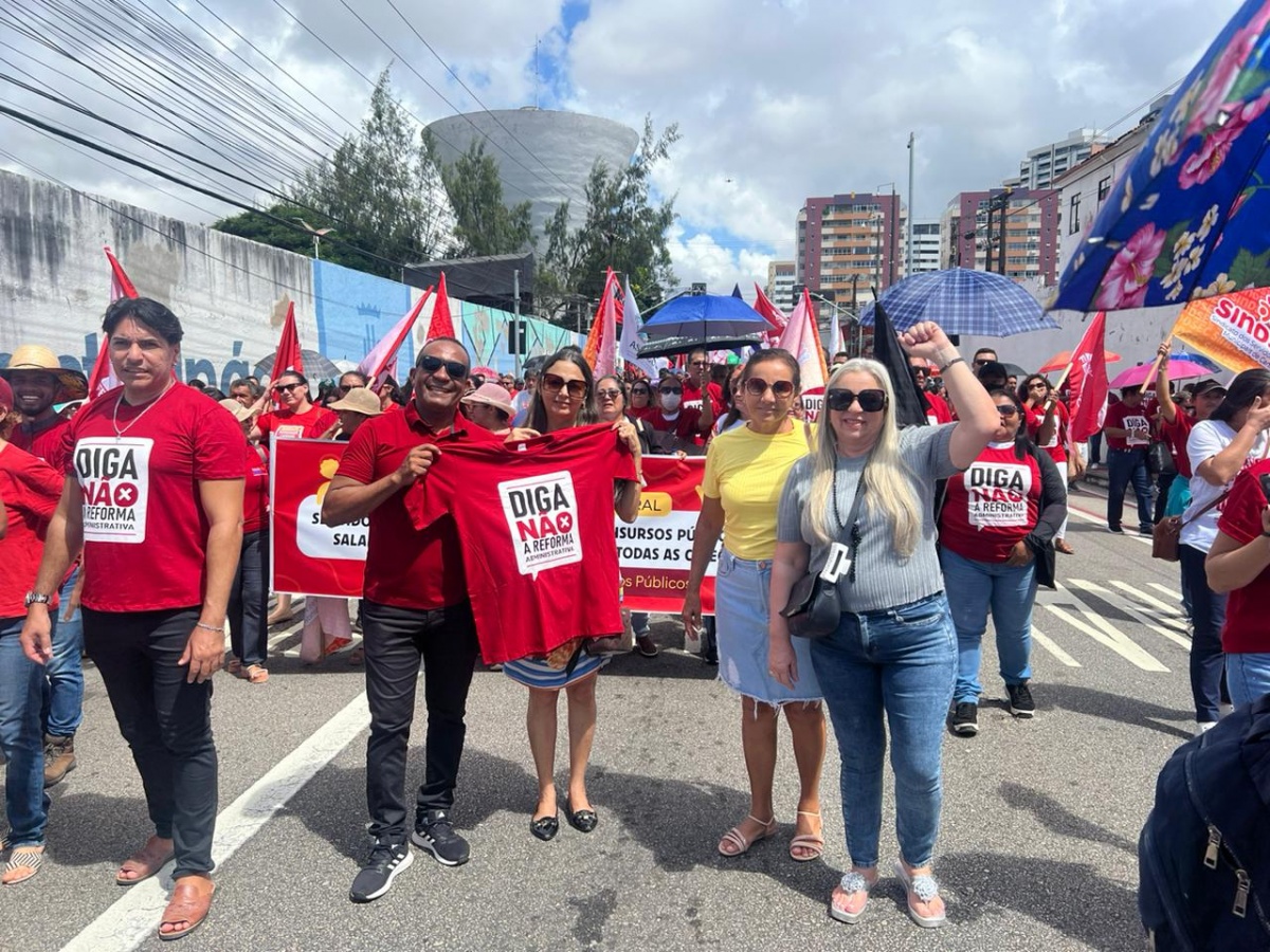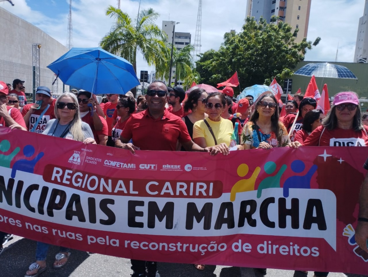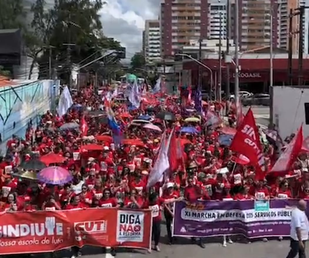 SINDMUB cumpre agenda em Fortaleza-CE e participa da XI MARCHA EM DEFESA DOS SERVIÇOS PÚBLICOS. Ato unificado realizado pela FETAMCE com a participação de sindicatos municipais, estaduais e federais. Na ocasião um multidão de servidores públicos marcham a caminho da Assembleia Legislativa do Ceará. Na pauta a PEC 32 tramitando no Congresso Nacional que retira direito da classe trabalhadora, como a admissão no serviço público através de concurso público, retira a estabilidade do servidor público e dificulta a implementação de Planos de Cargos e Carreiras de Servidores Públicos. Outra pauta importante é a luta contra o desmonte dos municípios que acontece por ocasião das eleições municipais. Pauta não menos relevante a luta pelo Direito de Greve que está sendo ameaçado pelos chefes dos poderes executivos e pelos tribunais burgueses que se posicionam contra a classe trabalhadora. SINDMUB sempre presente na luta em defesa dos DIREITOS.